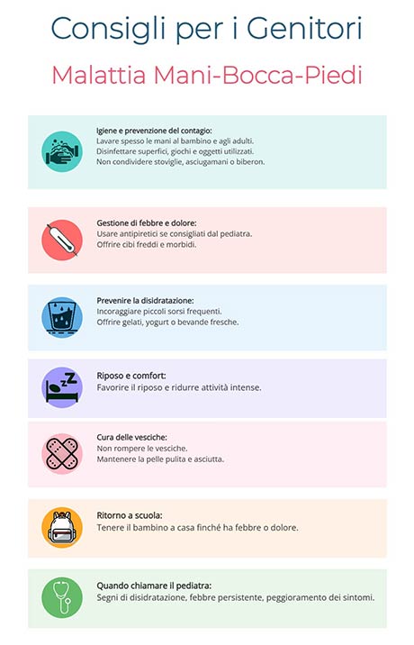 - Tuttavia, è consigliabile tenere il bambino a casa finché ha febbre, malessere o vesciche dolorose in bocca (per evitare contagio e per il suo benessere).